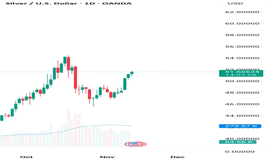 - Price Action: Silver is holding firm above $51.5, showing strong bullish momentum.