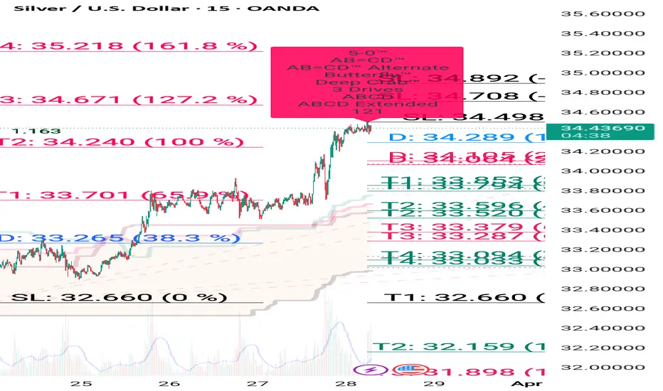 If price going upside/ downside then then buy or sell levels appear on Chart ( Automatically show when price reach any reversal zone of harmonic projection pattern based .