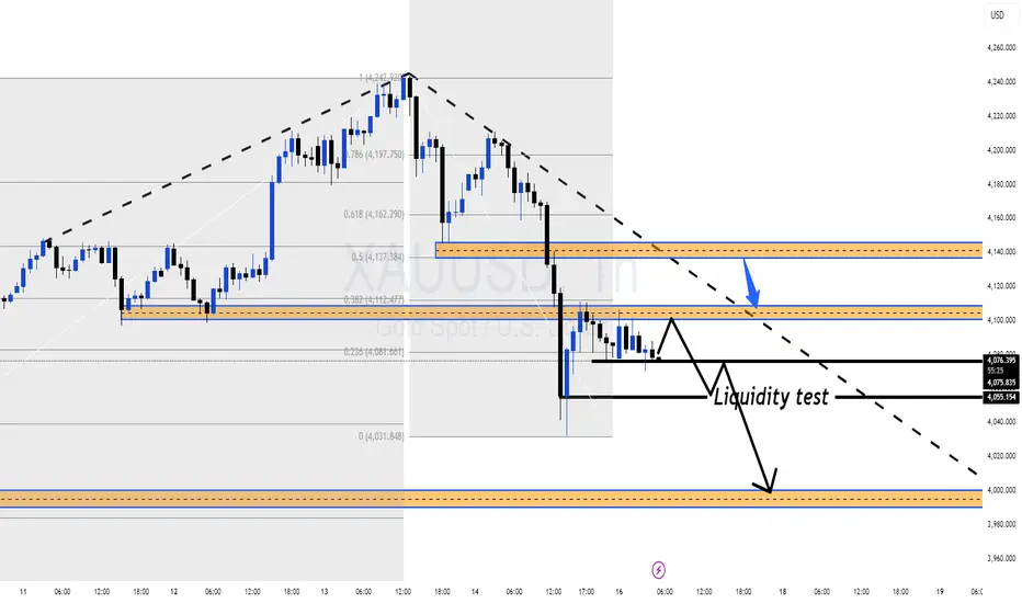 As long as price stays below 4,14x and H1 structure keeps printing lower highs, gold remains in a distribution phase.