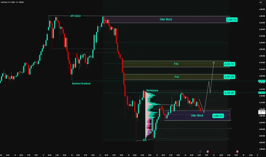 As long as the price holds the Order Block 4,080 USD zone, the recovery structure remains valid, and the feasible target is 4,197 → 4,235 USD.