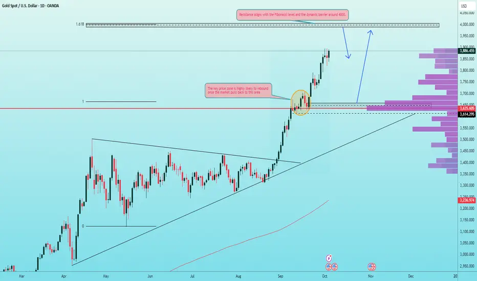 The weekly candle closed at 3,886.5 – a high level that most investors did not anticipate. The daily candle, almost fully bullish, has strongly reinforced the main bullish trend of gold in the medium and long term.