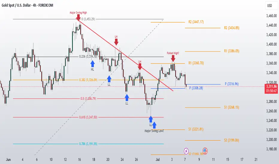 Gold made a solid attempt to break higher last week, but that 3360 resistance level (previous week's R1) proved to be a tough line to break. The bulls pushed hard but couldn't secure a clean breakout, and now we're seeing some of that momentum fade.