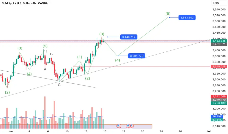 The current state of the market shows that we are in Wave 3. This is currently at 1.618 of Wave 1 possibly making one alert to near the end of this. This is being confirmed by liquidity sweep on the 1 hour time frame at the top. We can enter Wave 4 which shows a 500 pip decline to near 3380 levels. Post this we will start Wave 5 which can take us to 3515 levels which will be Fibonacci extension of 1 of Wave 3. After this it is possible to see a big fall. Will update when we get there.