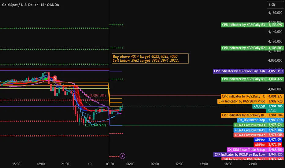 ๐น Entry: Sell below the low of the 15-minute candle โ once it closes below $3962