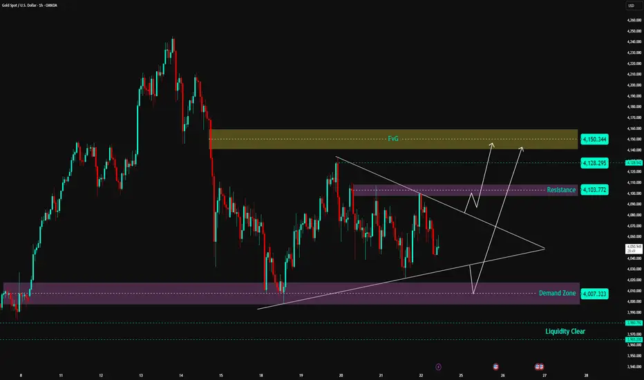 • 🟣 Resistance Zone: 4,103 – 4,110 USD → decisive area for direction