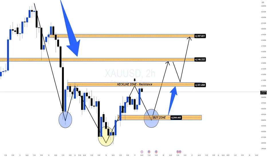 1️⃣ Slightly adjust to the neckline area or BUY ZONE 4,044–4,046