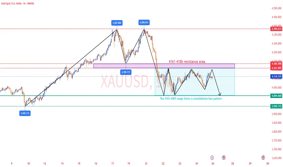 ✅ On the 1-hour chart, the structure currently shows a “double-top + consolidation” pattern, with key resistance near 4160–4161.