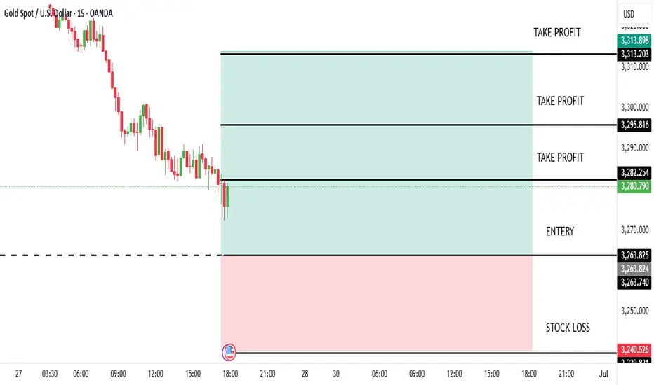 Based on the provided 15-minute chart for Gold Spot / U.S. Dollar (XAU/USD), published by NaviPips on TradingView.com on June 27, 2025, at 17:53 UTC, here’s a suggested trading setup for a sell position: