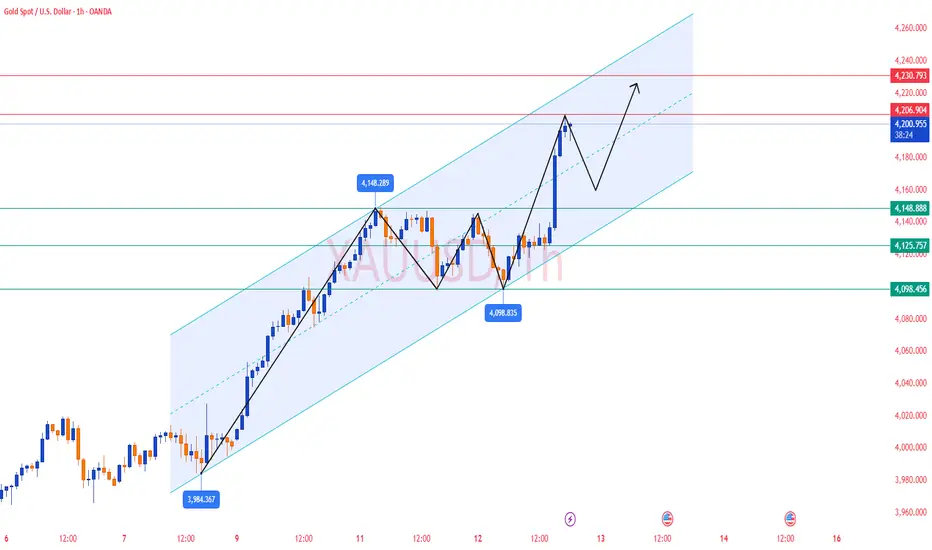 The uptrend remains intact on the 4H timeframe, but the rejection near 4206 signals exhaustion of short-term buying power. If gold fails to reclaim 4200, a temporary pullback toward 4130–4100 is likely before another potential rise.