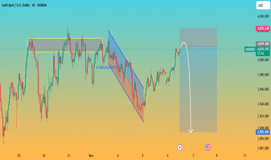 A potential bearish target appears around 3900–3920 (previous support zone), where buyers may re-enter.