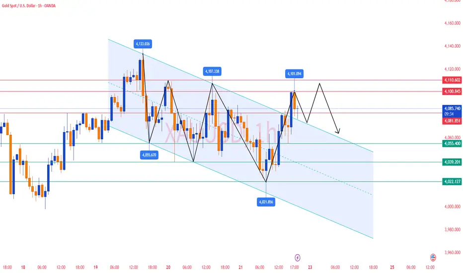 ✅ On the 1-hour timeframe, gold rebounded strongly from 4022 → 4101, but still failed to break through key resistance.