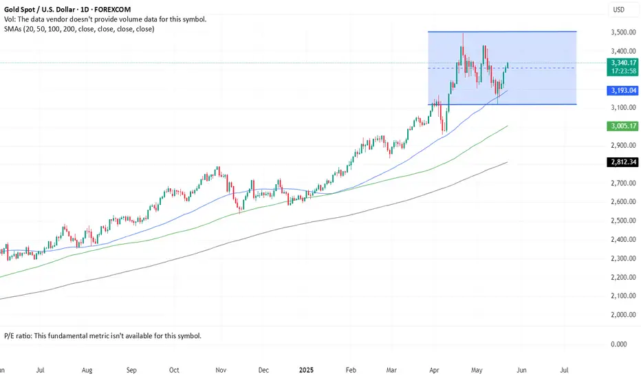 • Gold is now in a parallel channel between 3120 (lower) and 3500 (higher).