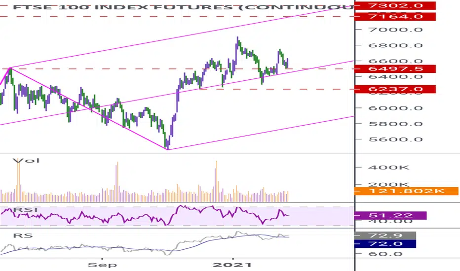 FTSe 100 is looking good for 7300. It has reversed from mid line of trend channel. 6200 is the SL on daily closing basis.