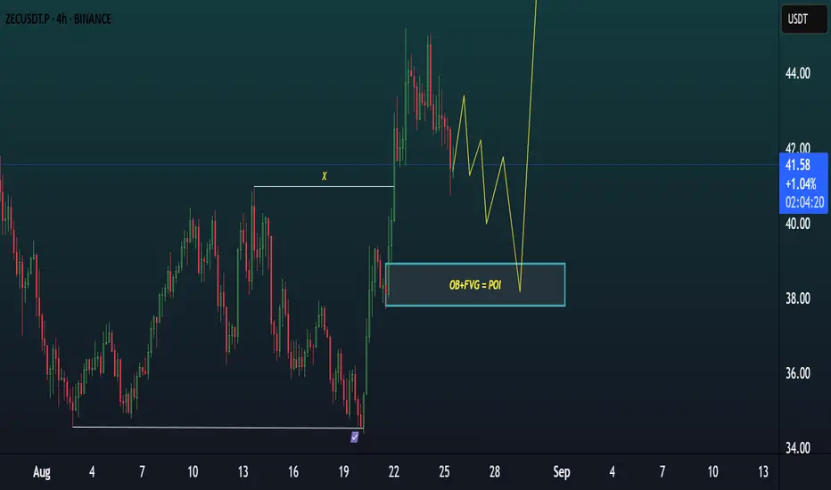 ๐ฆ POI Level: OB + FVG confluence around $38โ39 (strong demand zone).