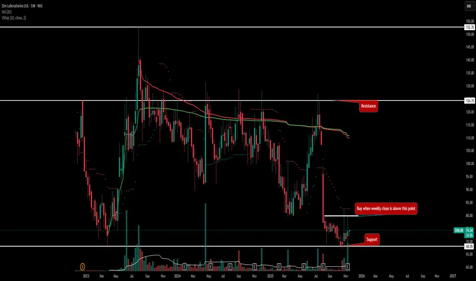 This looks like a classic case of support and resistance where 124.35 is acting as a weekly resistance and 68.05 as a weekly support.