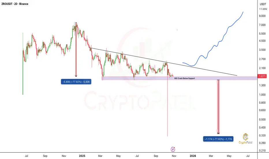 ZRO is forming a bearish flag and trading at a critical support zone, if this level breaks, a 30%-60% crash could follow within days.