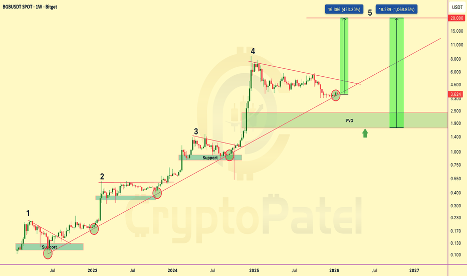 $BGB PRICE PREDICTION | 450%–1000% POTENTIALBGB is trading inside a well-defined long-term rising channel on the weekly timeframe, respecting bullish market structure since 2022.
