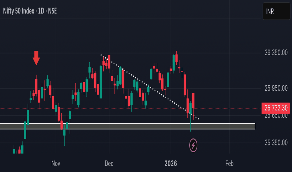 25900 is here! What’s next!?As we can see NIFTY did fell over 500++ points from our supply zone as analysed hitting or targets and now it can be seen trading at very important zone from where NIFTY reversed previously so we may expect NIFTY to show some minor short covering before finally heading towards our trendline support so plan your trades accordingly and keep watching everyone.
