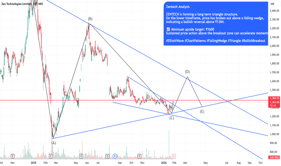 ZENTECH Bullish Breakout: Falling Wedge Resolves Within Long-TerZENTECH is currently trading within a long-term triangle structure, indicating prolonged consolidation before a directional move.