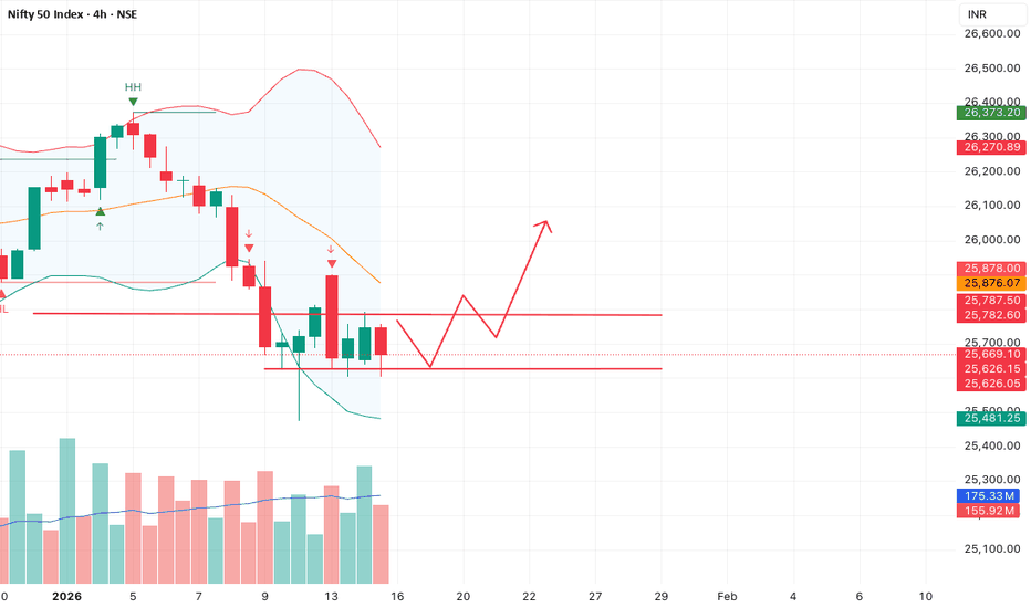NIFTY50 - 27 JAN 2026 EXPIRY OutlookAfter a sharp ~700+ point corrective move, NIFTY has entered a decision phase. The recent sell-off shows signs of momentum exhaustion, followed by volatility compression, which typically precedes a directional expansion — though the direction still requires confirmation.