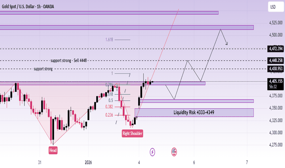 SL (guide): below the 4430 zone (refine on lower TF / spread)