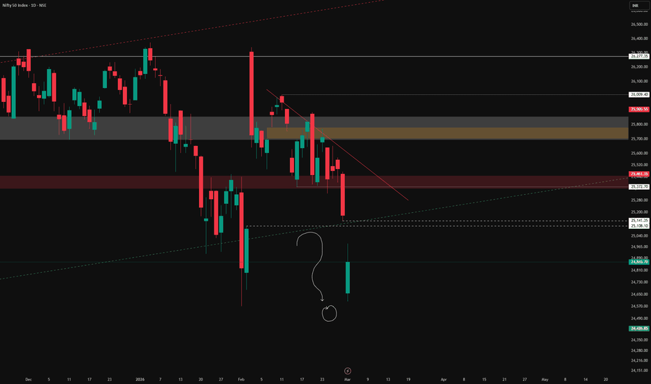 Nifty is currently testing the lower end of its rising channel, a technically important area. A mild relief bounce is possible from these levels.