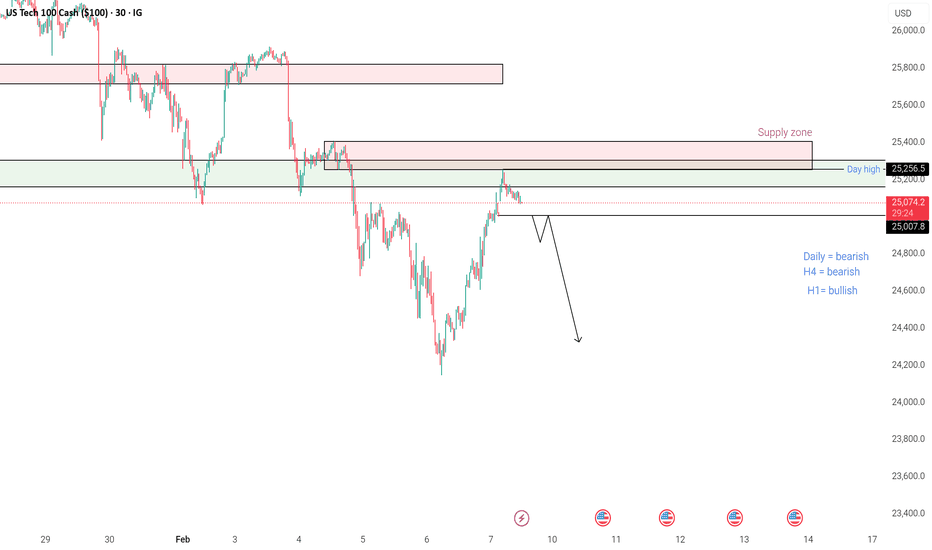 Nasdaq trade breakdown US Tech 100 (NASDAQ) – Intraday Bias & Supply Zone Reaction