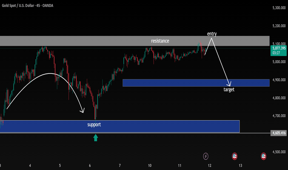 Entry: Near 5,100–5,120 resistance after confirmation (rejection / bearish candle close)