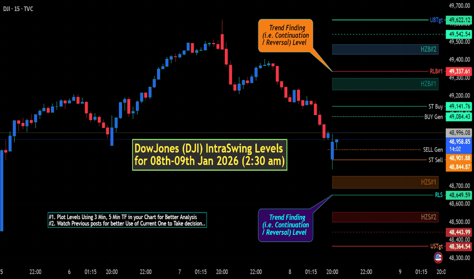 DowJones (DJI) IntraSwing Levels for 08th-09th Jan 2026 (2:30 amDowJones (DJI) IntraSwing Levels for 08th-09th Jan 2026 (2:30 am)
