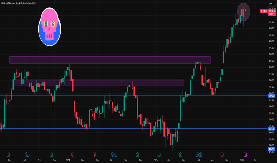 AUBANK 1 Week Time Frame 📌 1‑Week (Current) Key Levels