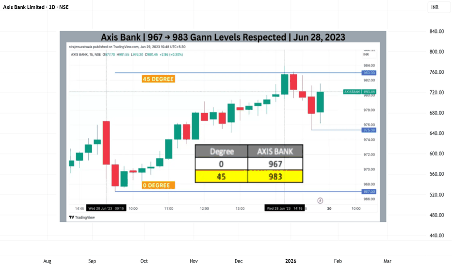 This idea presents a historical intraday observation of Axis Bank using the Gann Square of 9 framework to understand how calculated price–degree levels may influence short-term market behavior.
