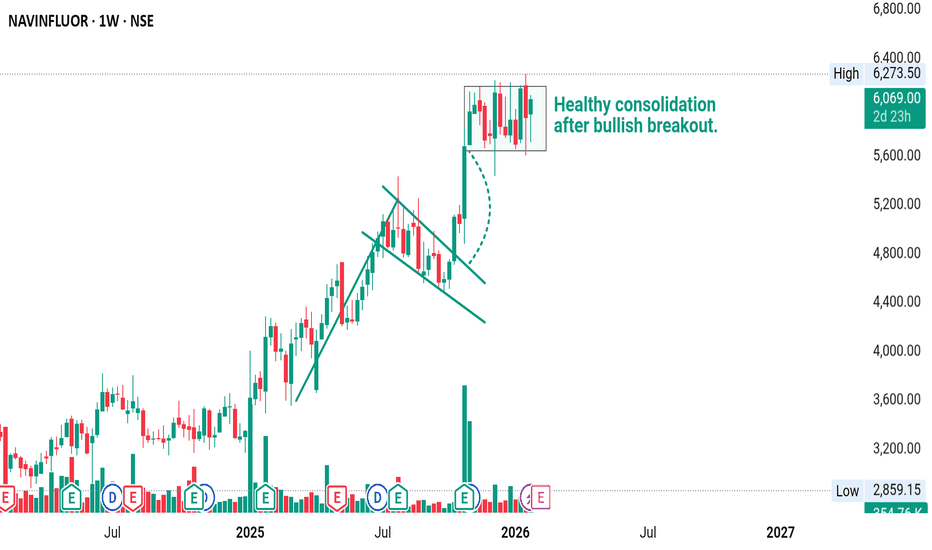 NAVINFLUOR – Breakout After Bullish Flag | Trend ResumesNAVINFLUOR was already in a strong uptrend, showing higher highs and higher lows.