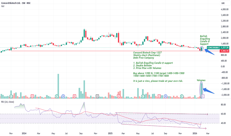 Concord Biotech Cmp 1327 Bullish Engulfing Candle @ supportConcord Biotech Cmp 1327