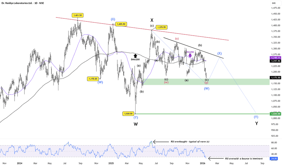 Dr Reddy’s Labs:Oversold Bounce Likely, But Structure Still WeakPrice has now reached a key demand / support zone , while RSI has slipped into oversold territory , a setup that often precedes a technical bounce . From a pure momentum perspective, a short-term relief rally looks likely .