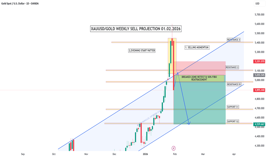 XAUUSD/GOLD WEEKLY SELL PROJECTION 01.02.26“This is the weekly sell projection for Gold, XAUUSD.