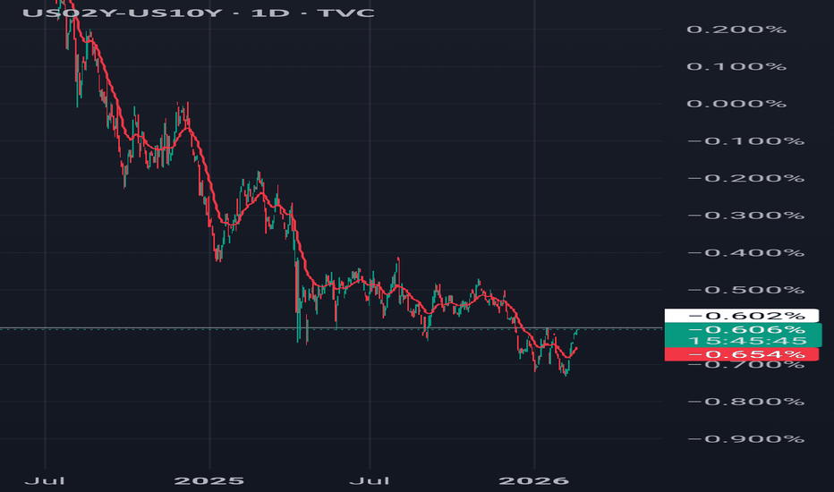 • US 2Y–10Y yield spread is rebounding toward resistance