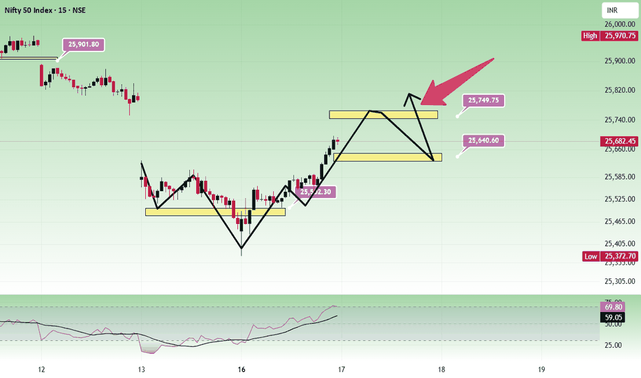 On the upside, 25550 is acting as an important resistance level. If price reclaims 25550 with strong bullish momentum and sustains above it on the 15-minute timeframe, a long position can be considered above 25550 with targets at 25650, 25700, and 25750+. A clean breakout above 25750 may further push the index toward 25800 and higher levels. However, unless 25550 is decisively broken and sustained, upside moves should be treated as pullback rallies.