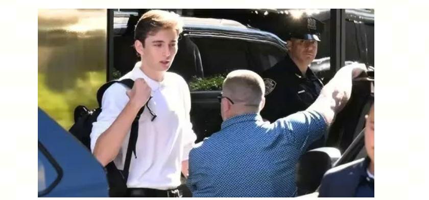 纽约的清晨,五辆黑色 SUV 从 Trump Tower 出发,驶向 NYU 校园。Barron 坐在其中一辆,车窗封闭。两辆车在前,三辆在后,特勤局分散在行人中。