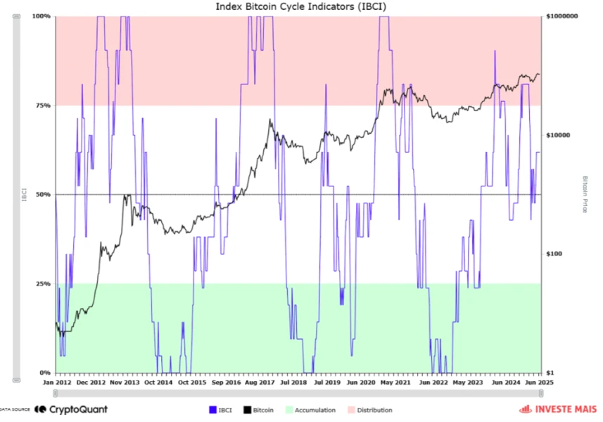 “After the strong upward movement between the end of 2023 and the first quarter of 2024 — when the IBCI reached the distribution region (above 75%) — the indicator went through a correction following the fall in the price of BTC,” the post continued.