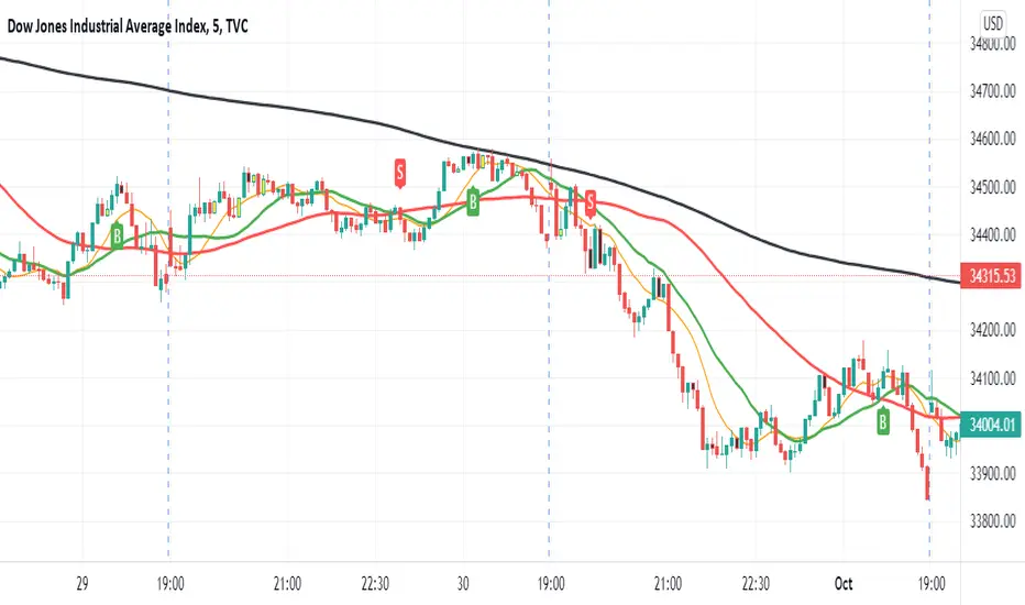 Crossover signal for Buy as "B" will be shown in the chart if SMA 10 is above 20 & 50 and SMA 20 is above 50.