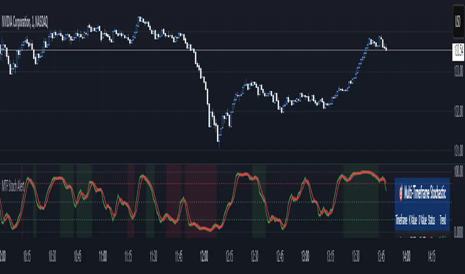 The Multi-Timeframe Stochastic Alert is an advanced technical analysis tool that helps traders identify potential trading opportunities by analyzing momentum across multiple timeframes. It combines the power of the stochastic oscillator with multi-timeframe analysis to provide more reliable trading signals.