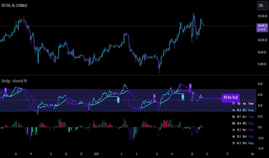 ZenAlgo - Advanced RSI is a cohesive system where each component enhances the others. The originality and added value of the indicator come from: