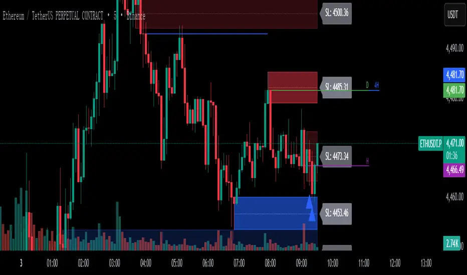 Optionally displays Stop Loss price on OBs (default: disabled), showing the low for Bullish OBs and the high for Bearish OBs.