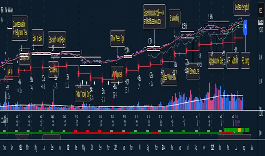 The base locator is based on the Darvas Boxes and the counting is made following WON CANSLIM rules including the reset count rule.
