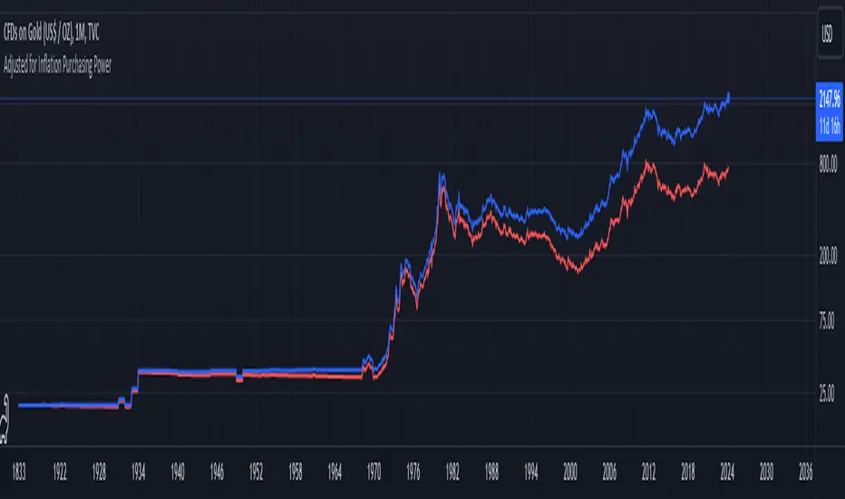 Now, when we talk about 'real value,' we're not just philosophizing. We're anchoring our prices to a point in time when the journey began—let's say when gold trading started on the markets, or any inception point we choose. By 'shadowing' certain years—say, from the 1970s when the gold standard was abandoned—we can adjust this chart to reflect what the inflation-adjusted price means since that key moment in history.