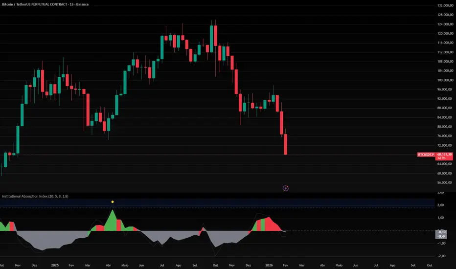 © 2026 Denis, Institutional Absorption Index (IAI). All rights reserved. This script is protected by copyright law. Unauthorized redistribution, modification, or commercial use without explicit permission is strictly prohibited. This indicator is provided for educational purposes only. The author is not responsible for trading decisions or financial losses.