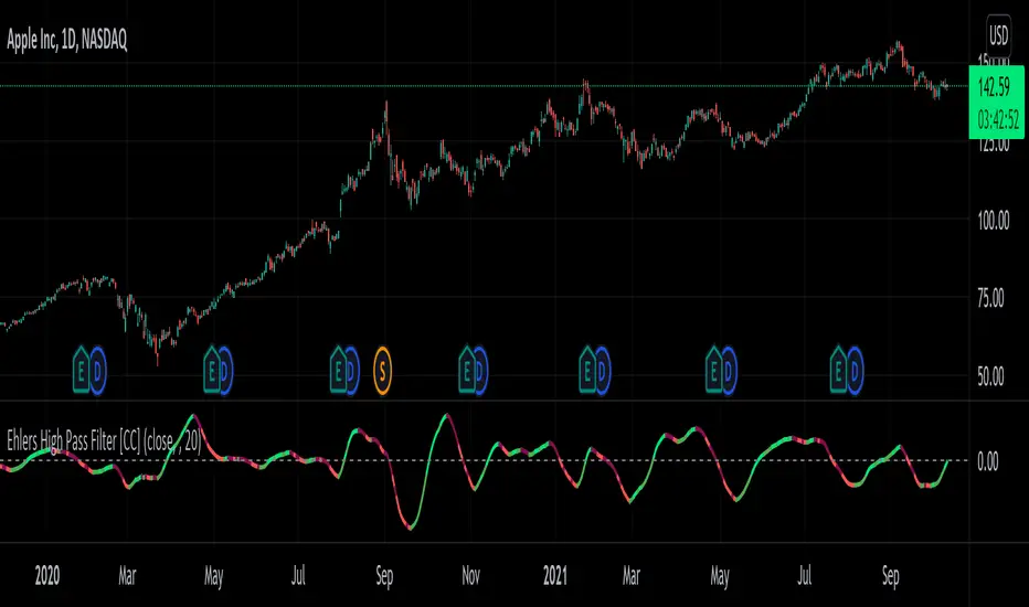 The High Pass Filter was created by John Ehlers and I would define this indicator as both a momentum indicator but also a predictor indicator. This does a pretty good job of predicting future price action even though I have double smoothed it to provide clear buy and sell signals. I will be publishing quite a few more Ehlers indicators very soon so stay tuned. This indicator can be interpreted in a few different ways but most importantly it is a mid to long term sell signal when the indicator falls below the zero line and vice versa. It also falls below the zero line when the underlying price data starts losing momentum so it can be used also as a price reversal. I have included strong buy and sell signals in addition to normal ones so darker colors are strong signals and lighter colors are normal signals. Buy when the line turns green and sell when it turns red.