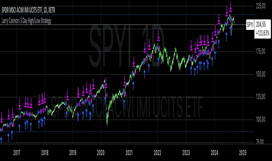 The Larry Connors 3 Day High/Low Strategy is a short-term mean-reversion trading strategy that is designed to identify potential buying opportunities when a security is oversold. This strategy is based on the principles developed by Larry Connors, a well-known trading system developer and author.