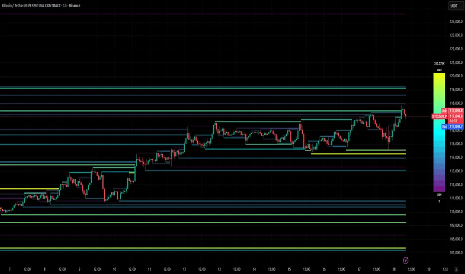 • Analysis range: global or constrained (Bars Back or ±% price window). Color scaling can be global or range‑scoped.