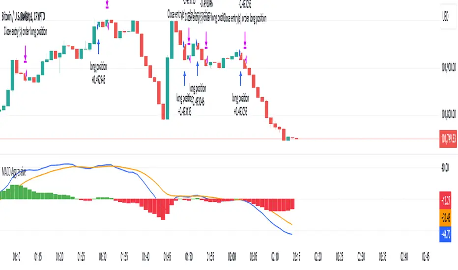 Visual Indicators: The plotted MACD line, signal line, and histogram columns provide clear visual feedback for the strategy's operation.
